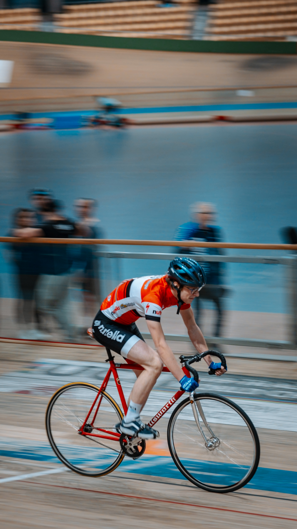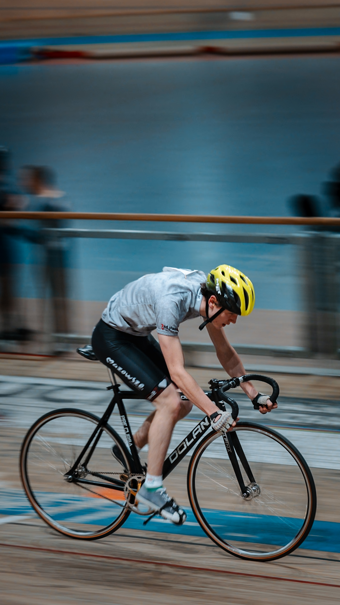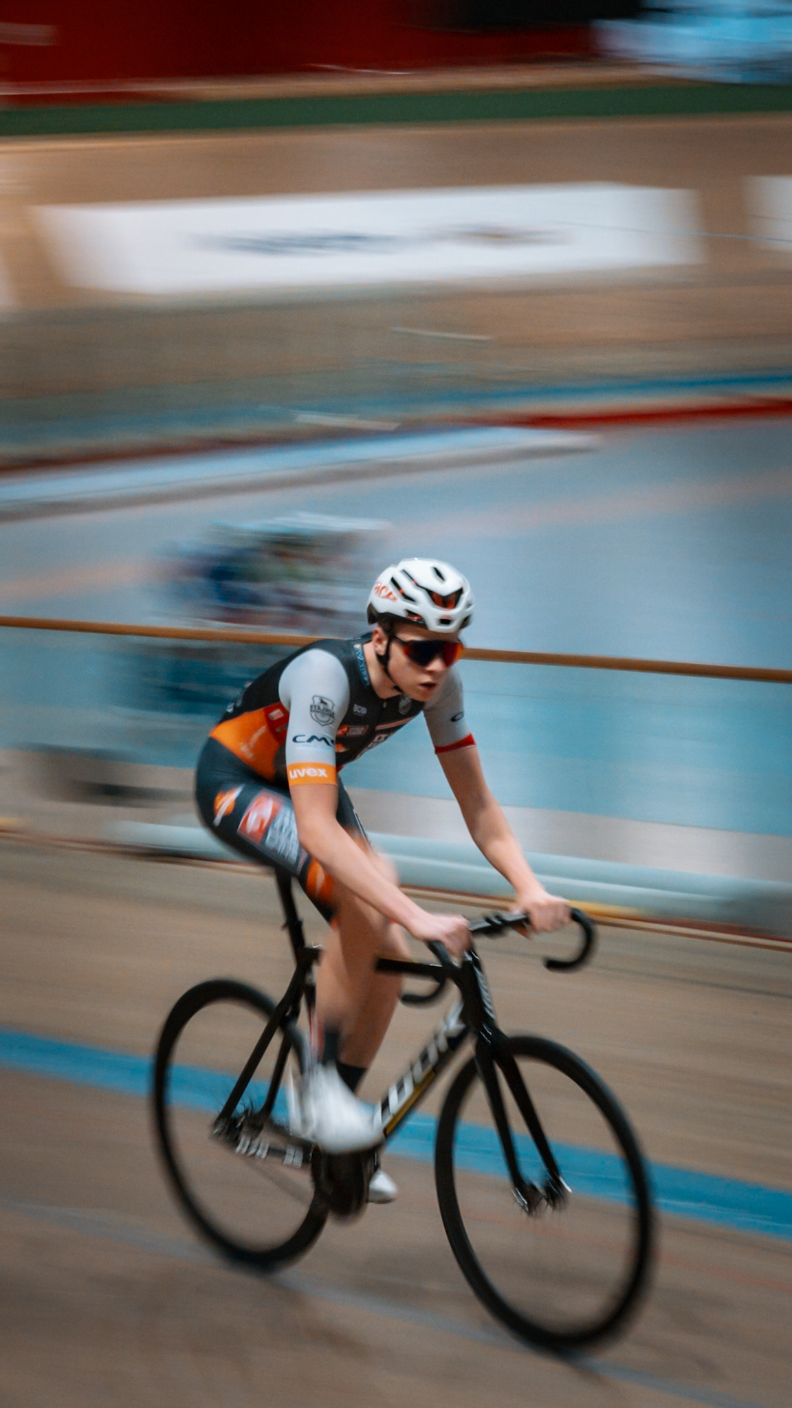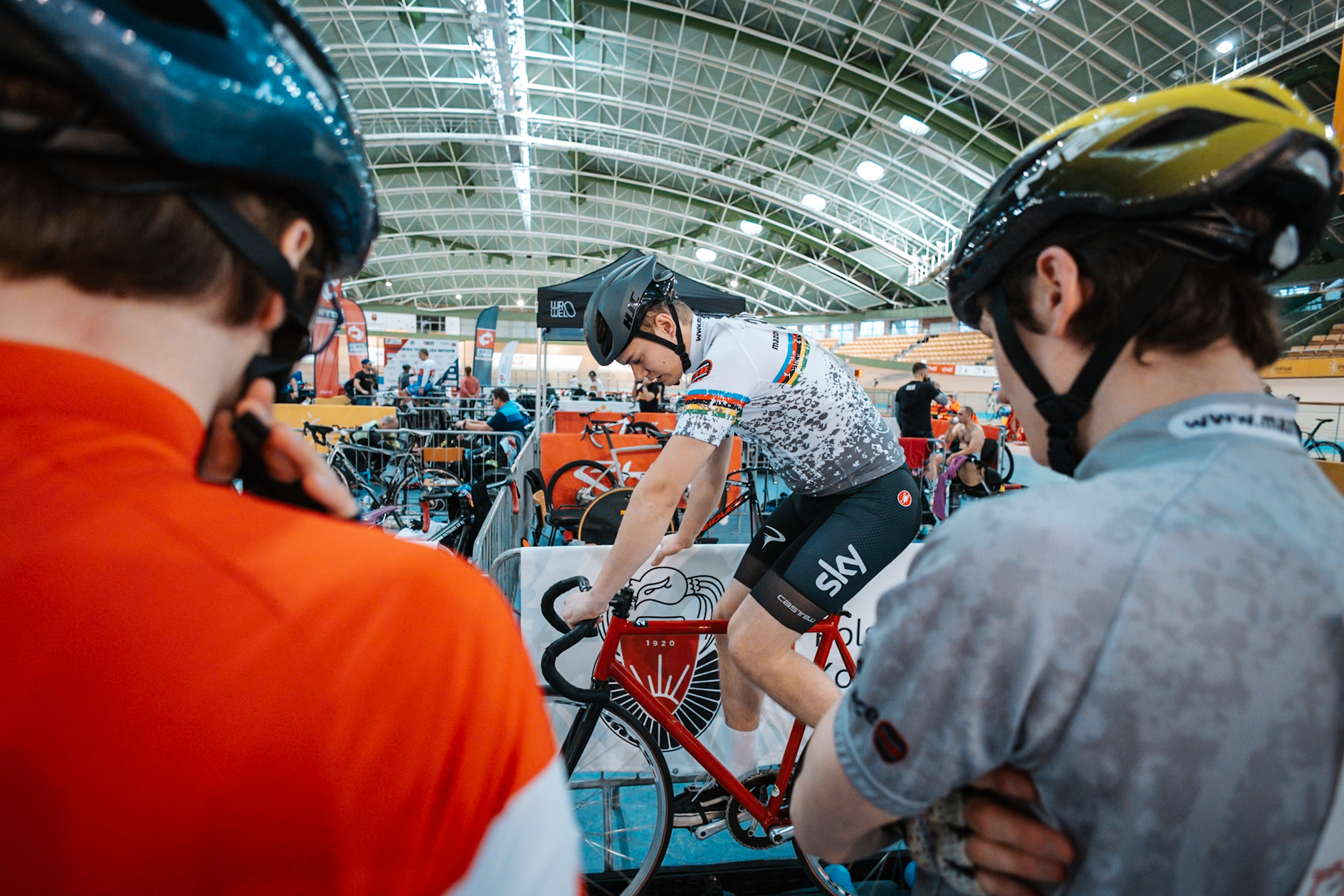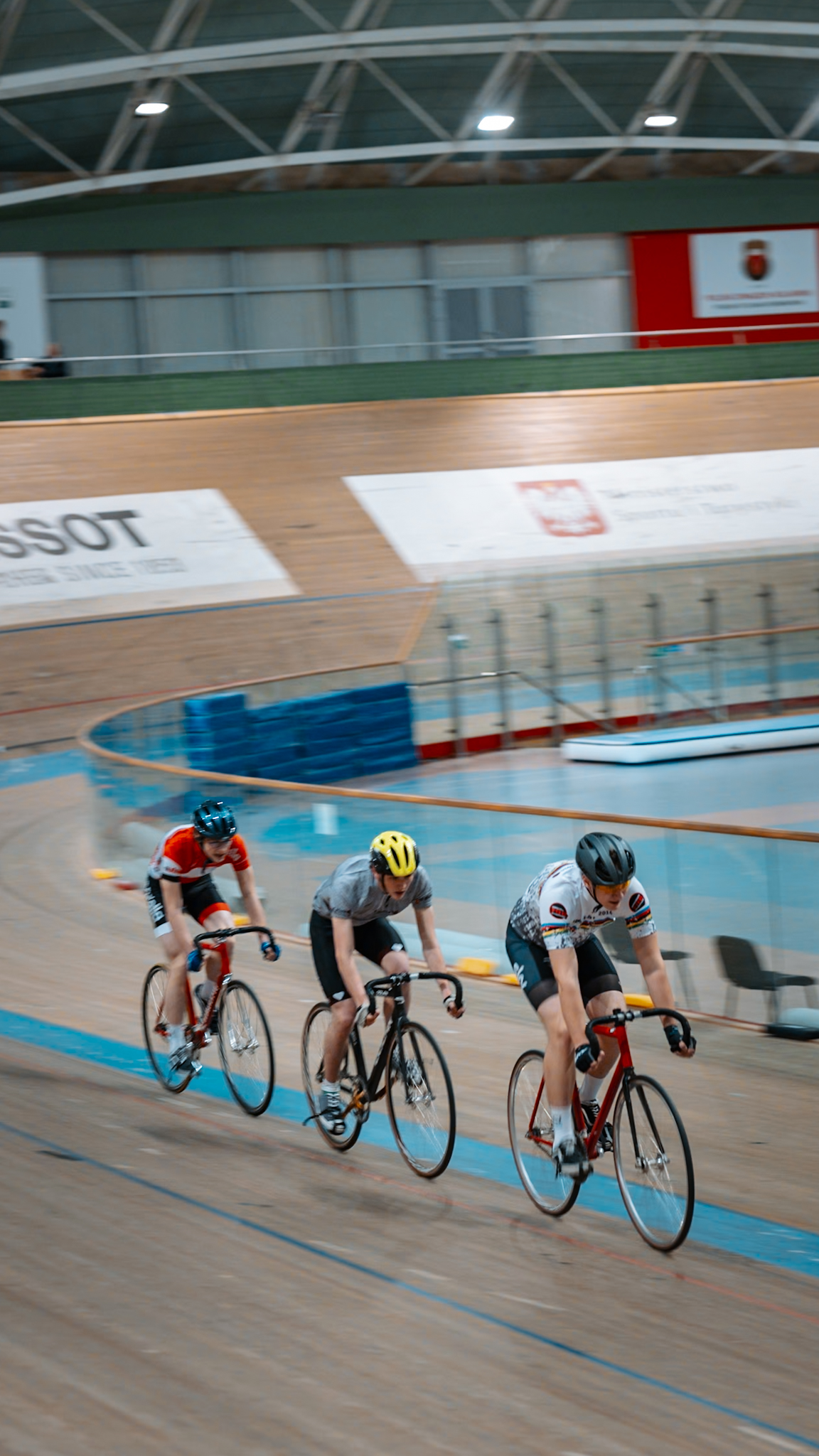 Fotografie wykonane kolarzom z grupy „Velo Pomelo” podczas zawodów w Arenie Pruszków, z myślą o publikacji w mediach społecznościowych.